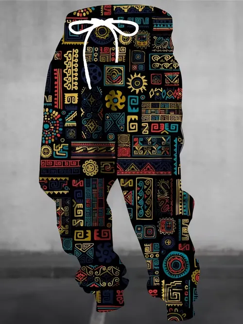 Men'S Fashion 3D Ancient Egyptian Pattern Print Sweatpants with Drawstring And Pockets, Stylish Long Trousers.